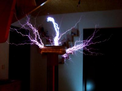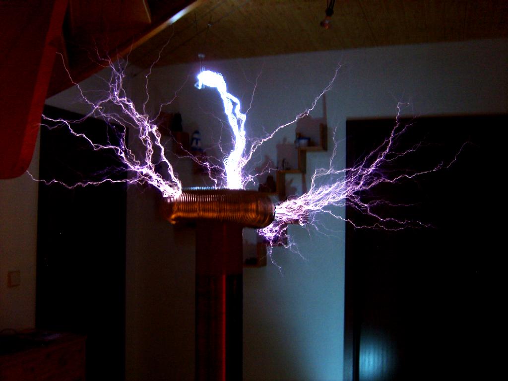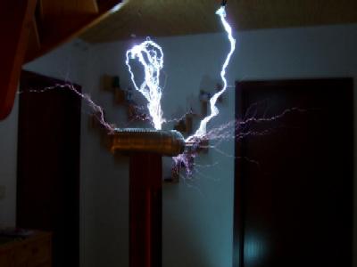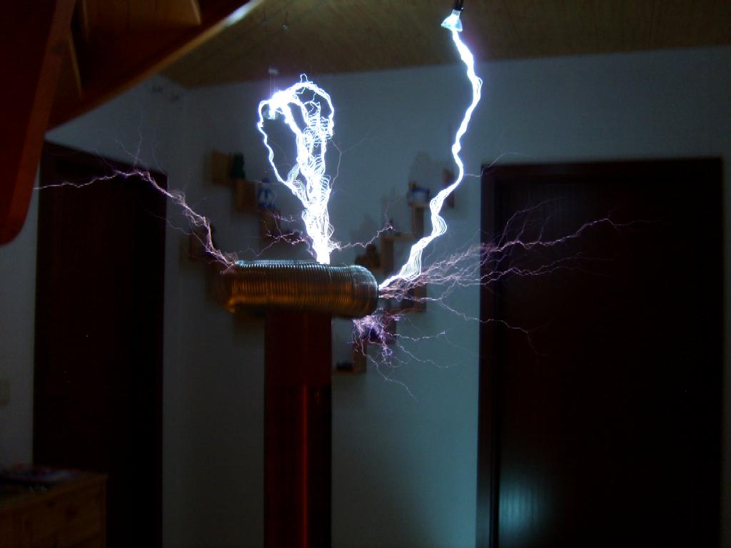 Mittlerweile reichen die Funken über einen Meter weit, das entspricht einer Spannung von über einer Million Volt!